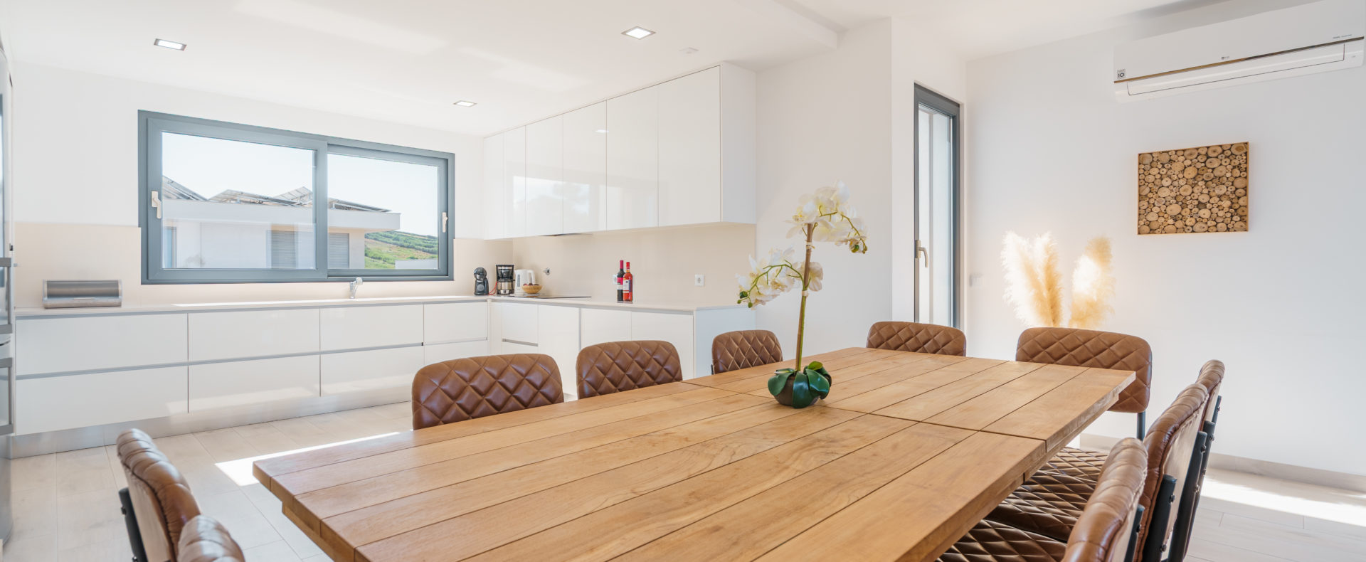 On the 1st floor, the living room with sea views and balcony, with a TV offering all the international channels, Netflix and Disney+, invites you to enjoy family leisure time. The fully equipped kitchen is the ideal place to prepare delicious meals!